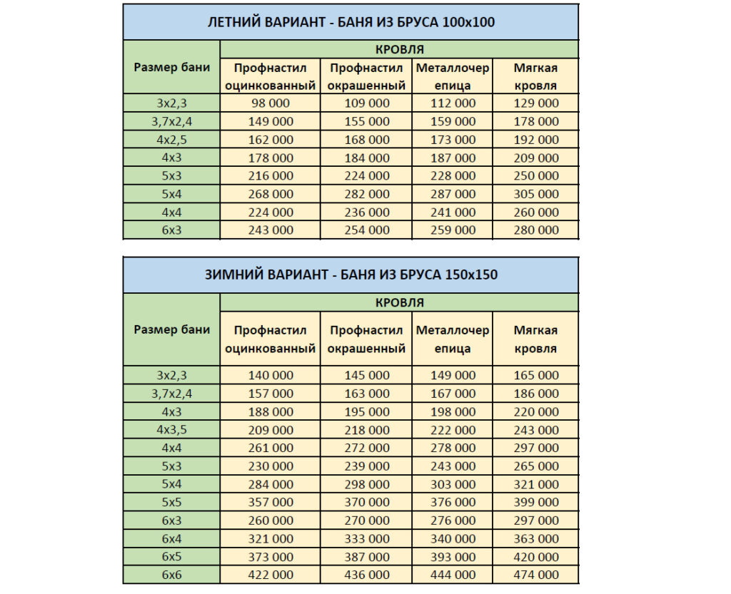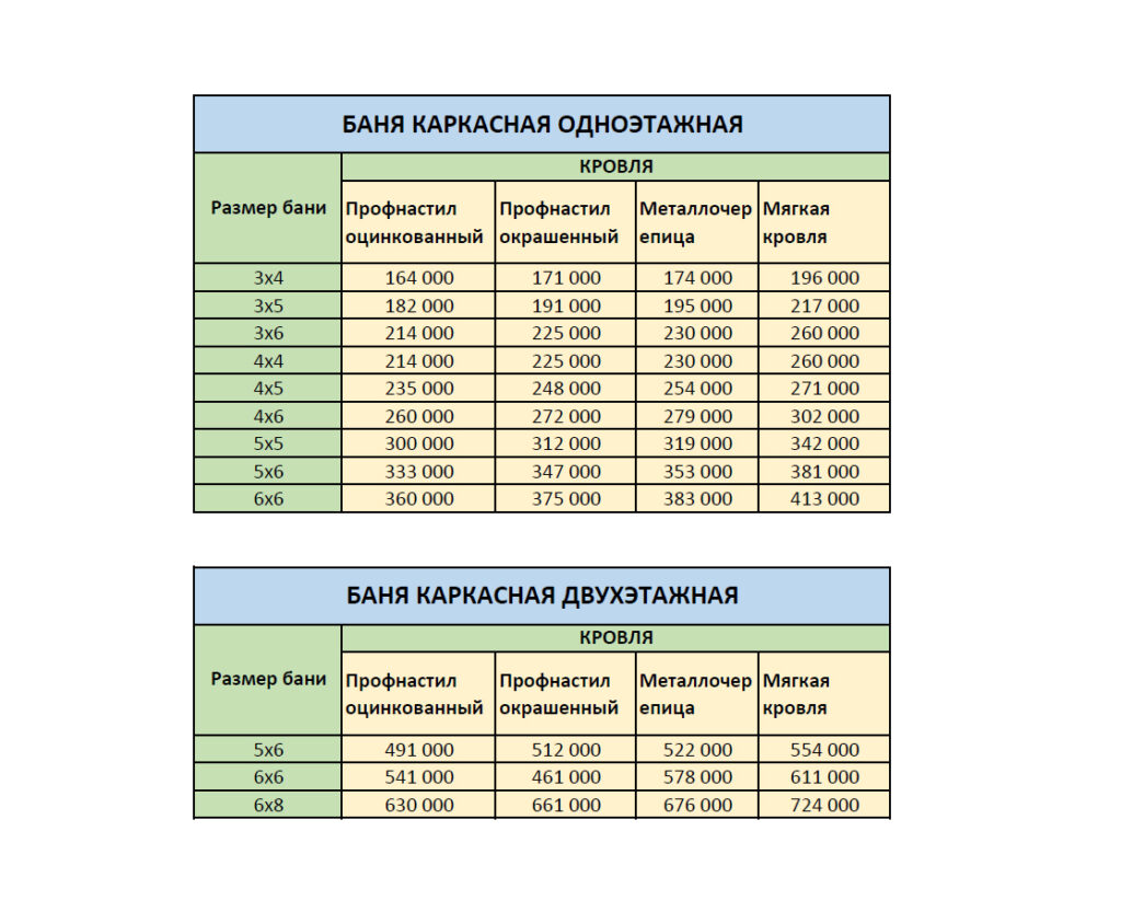 Прайс-лист бани — ДОМиБАНЯ.РФ