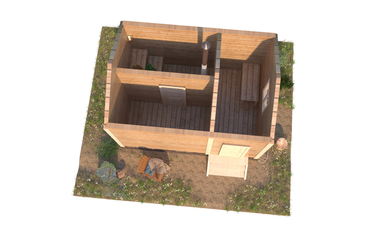 Представляем Вам проект бани из бруса 3х4, но с небольшим дополнением. Теперь мы добавили небольшой каркасный предбанник. Тем самым смогли отделить парную от мойки!