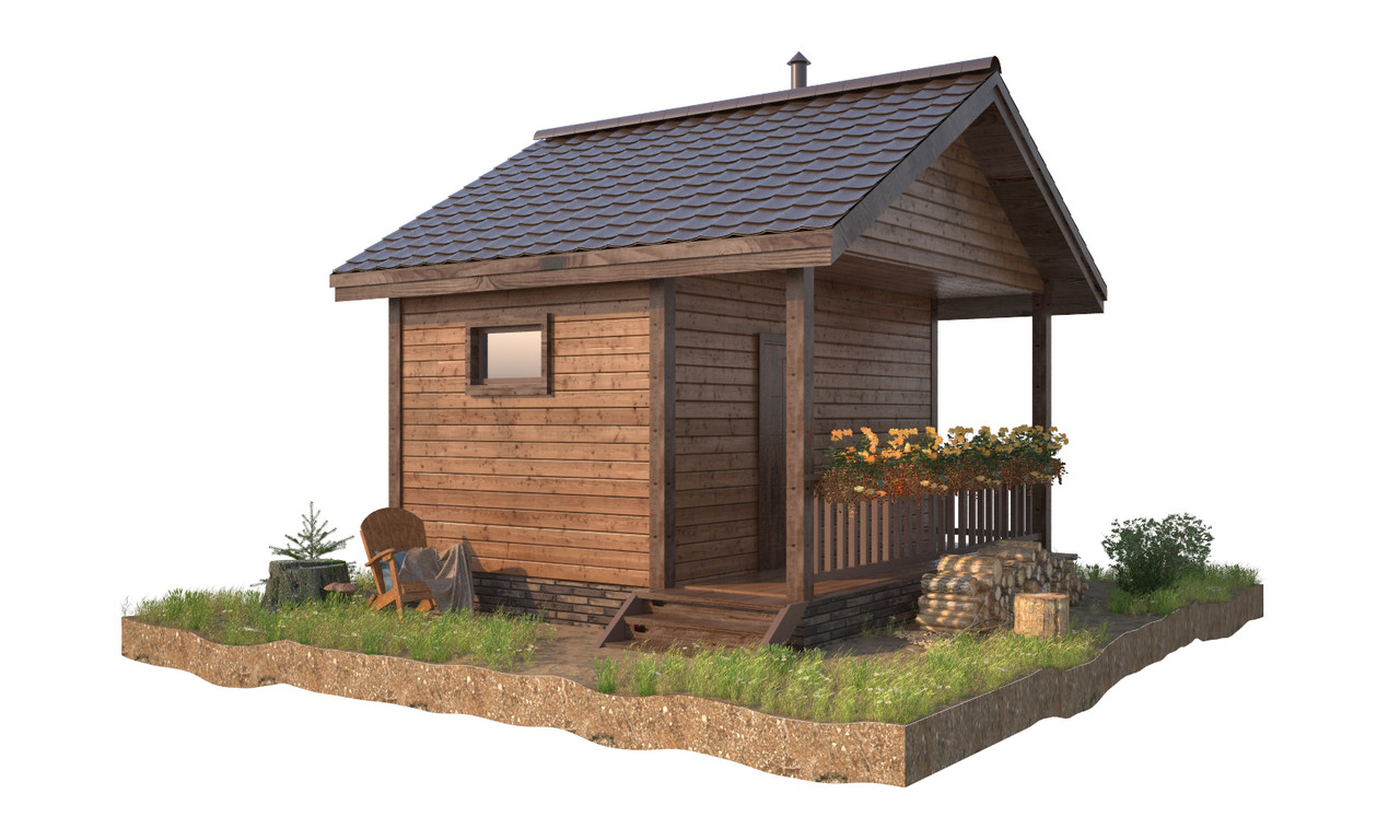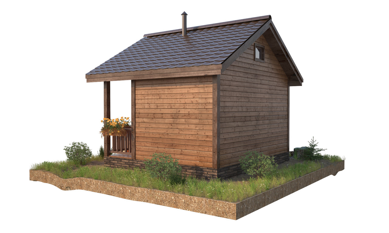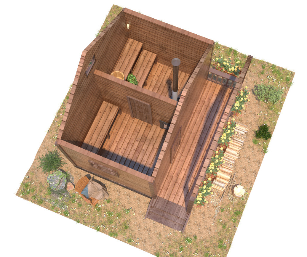 Вишенкой на торте является просторная терраса 2х4 метра, беседку теперь строить не обязательно, на террасе у бани легко уместиться угловой диванчик и столик. Как приятно будет посидеть после баньки за чашечкой чая.