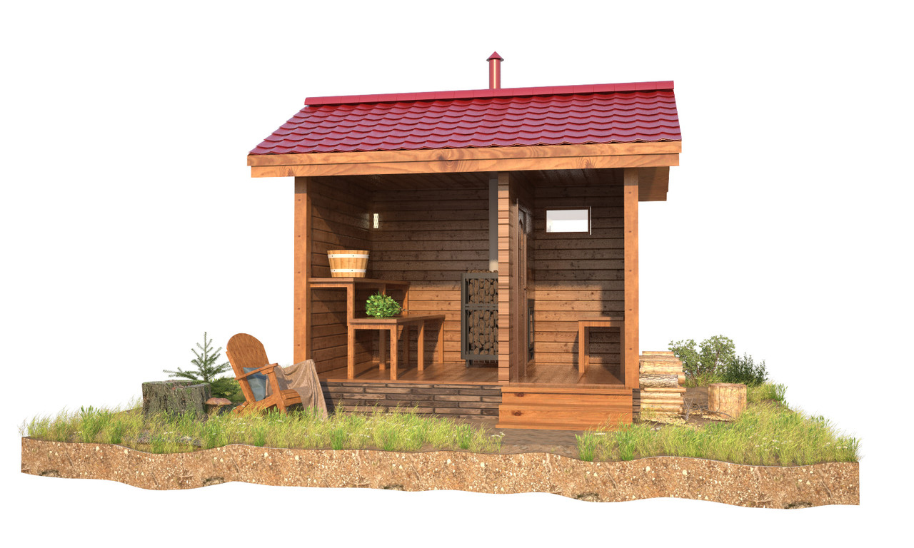 В отличии от срубовой бани здесь размер внутри больше. Также стоить отметить, что такая баня выйдет дешевле.