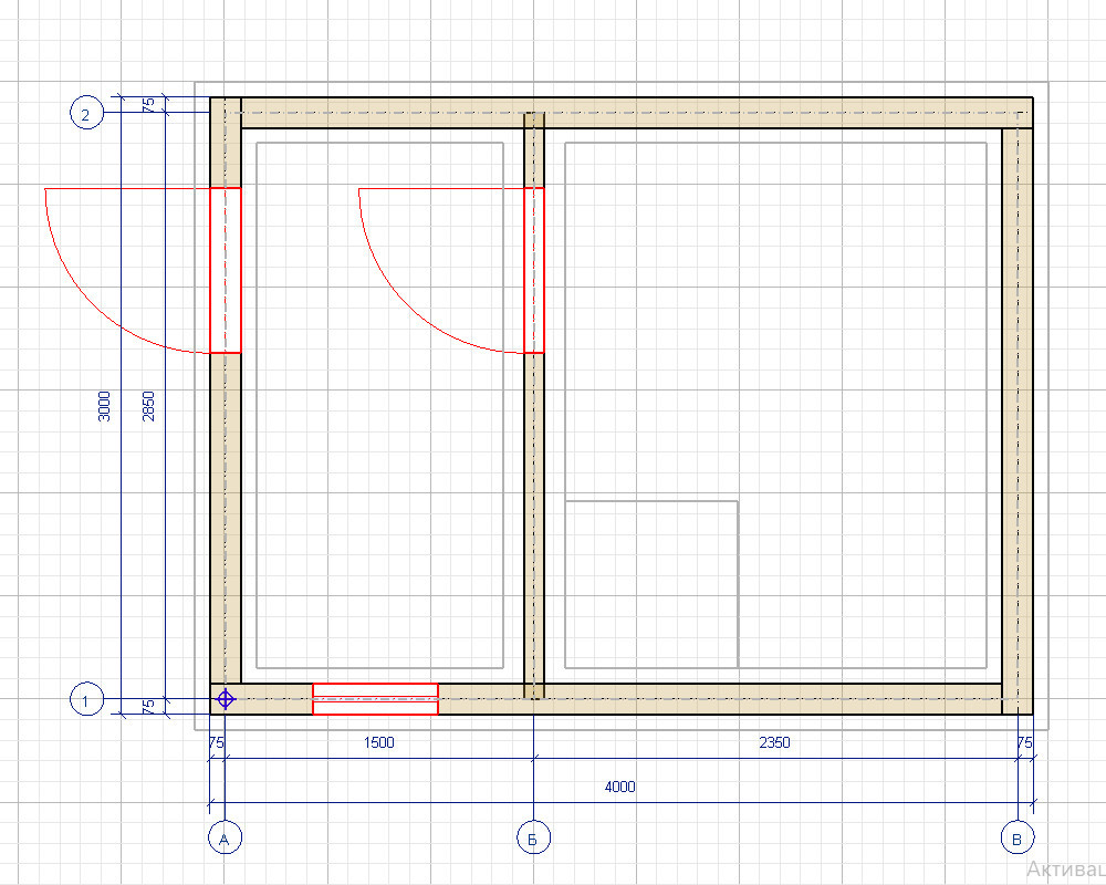 Стены изготовлены из бруса толщиной 150 мм позволяет использовать баню и в зимнее время года. Одна перегородка разделяет парную с моечной от комнаты отдыха.