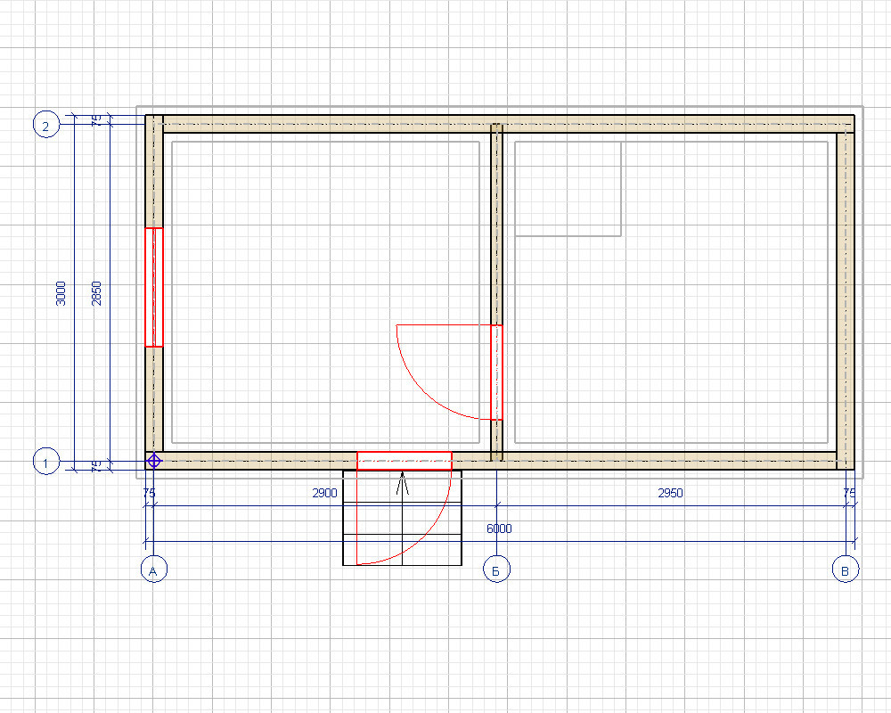 Проект разделен на две комнаты. Парная и мойка объединены в одном помещении, так делалось из покон веков в классических русских банях. За счет большого объема помещения, воздуха будет хватать с лихвой.