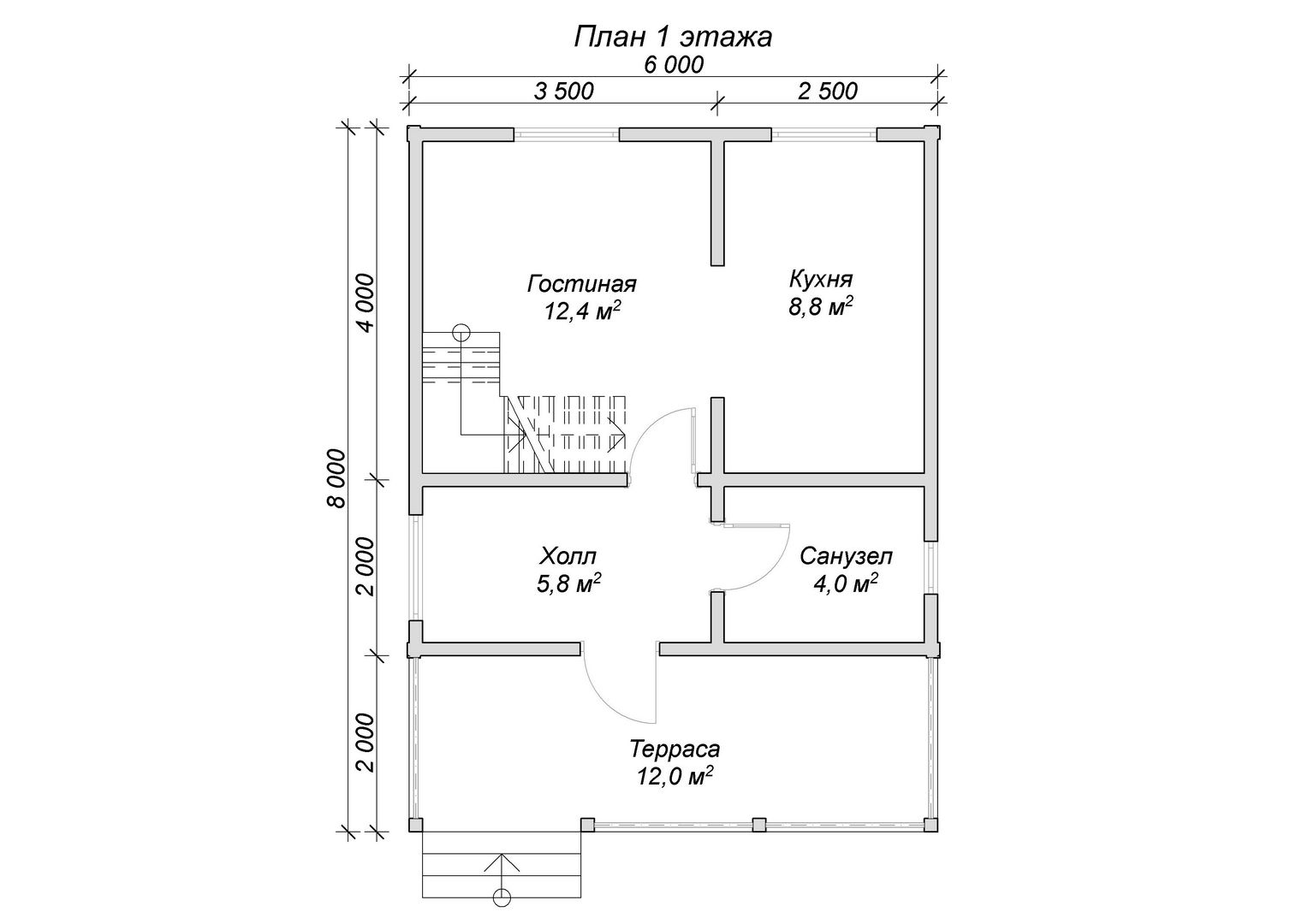 Двухэтажный дом «Абсалон» с коробкой 6*6 и террасой 2*6, даёт 67 квадратных метров для воплощения идей и дизайнерских решений заказчика. Вы можете сами распланировать расположение перегородок, количество комнат и служебных помещений, увеличить или уменьшить террасу, окна и двери, выбрать тип покрытия. Постройка полностью выполнена из дерева по каркасной технологии, основана на фундаменте из бетонных блоков. Все стыки и соединения максимально обработаны для защиты от влаги и осадков. Срок выполнения работ от 7 до 30 рабочих дней в зависимости от сложности проекта.