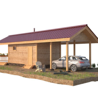 • Баня из бруса 6х4 с террасой и навесом